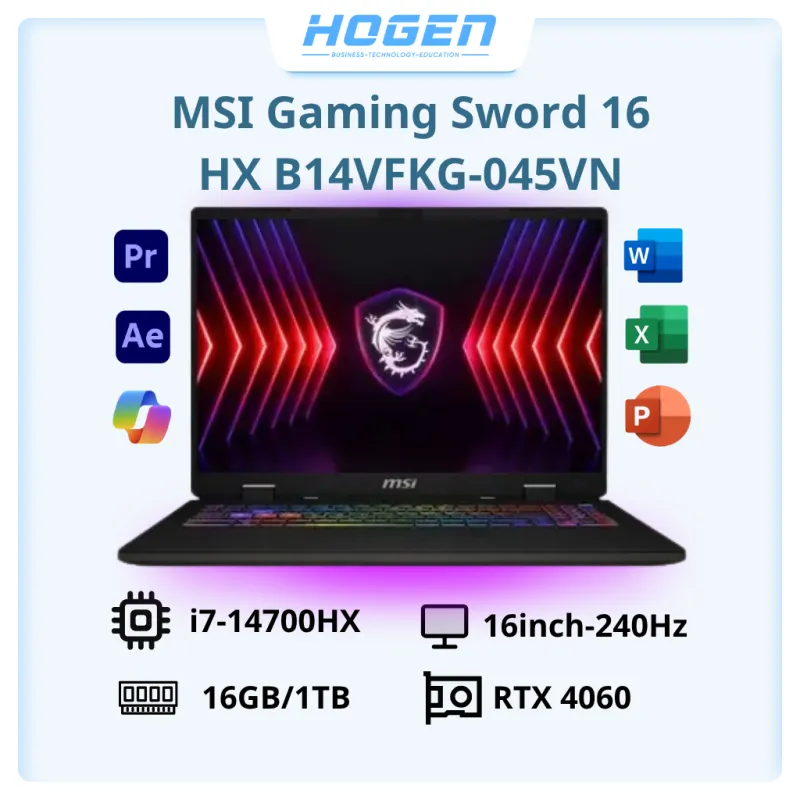 Đánh giá MSI Gaming Sword 16 HX B14VFKG-045VN (GeForce RTX 4060 8GB/i7-14700HX/16GB/1TB SSD/16 inch QHD+ 240Hz//Win11)